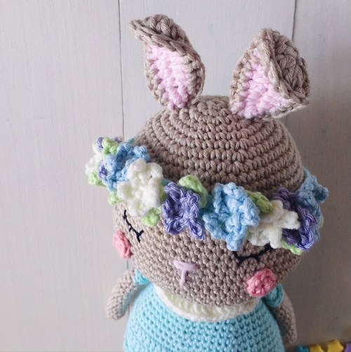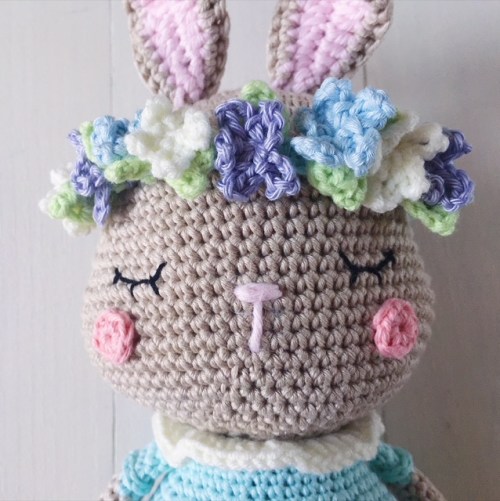 I am absolutely in love with the pattern and I love how Alison has made the bunny ears — too cute, really! The floral headband is a stroke of genius and I picked all my favourite colours for it.