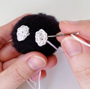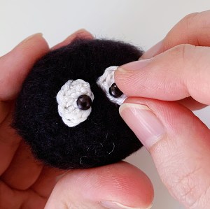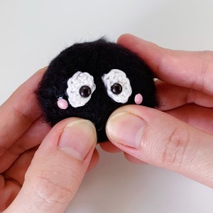 Important tip: Make sure to crochet tightly for this project, or your stuffing will show through when you start fuzzing up the soot sprite. Use a tweezer to remove any stray stuffing that peeks through.