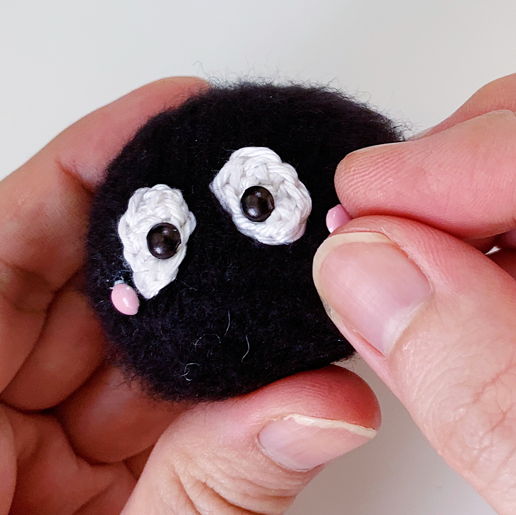 Important tip: Make sure to crochet tightly for this project, or your stuffing will show through when you start fuzzing up the soot sprite. Use a tweezer to remove any stray stuffing that peeks through.