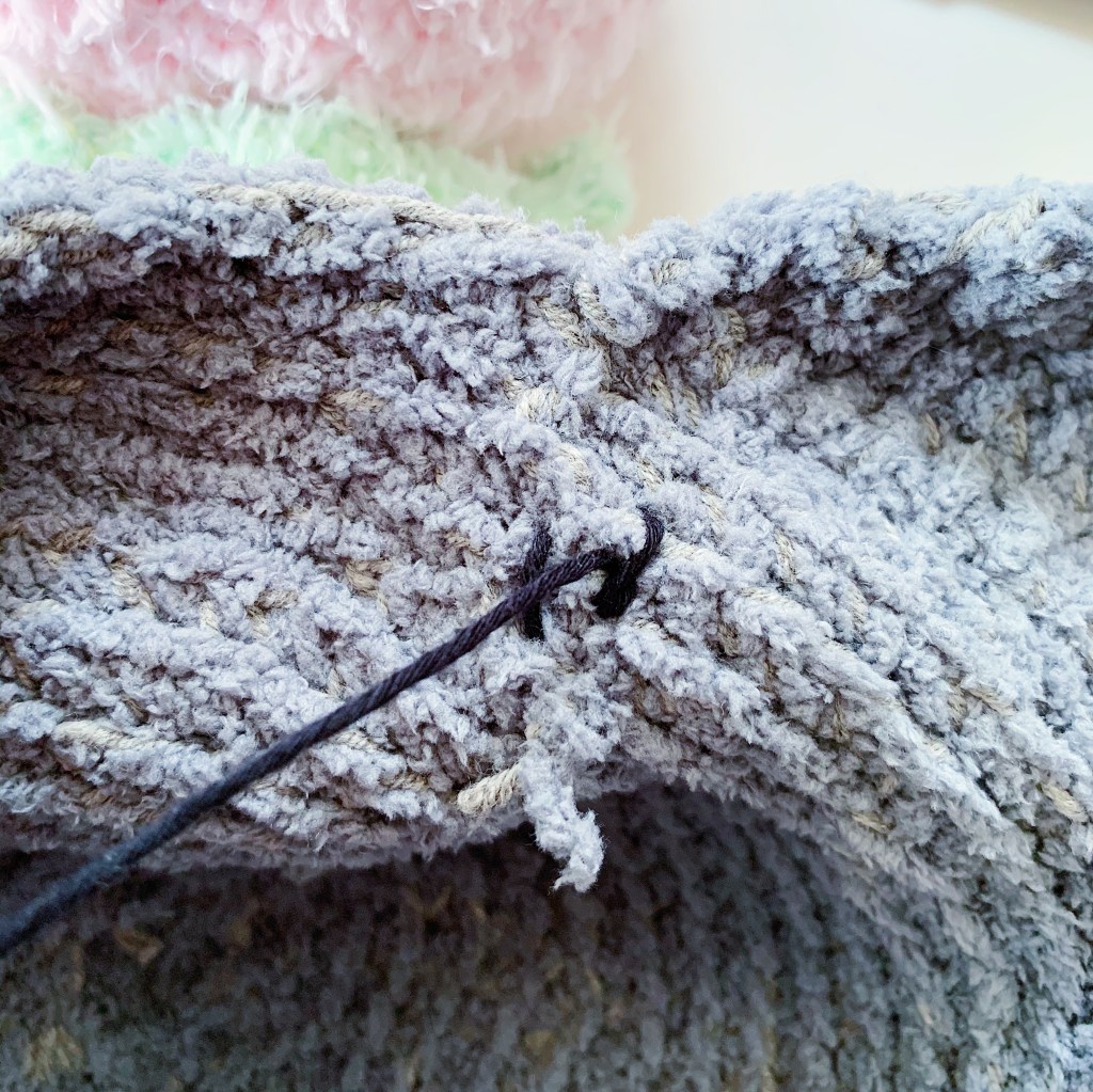 IN CASE YOU DIDN’T SEE THIS NOTE EARLIER: Please remember that when you’re working with fuzzy yarn paired up with a normal yarn, all subsequent rounds are worked in BACK LOOPS ONLY.
