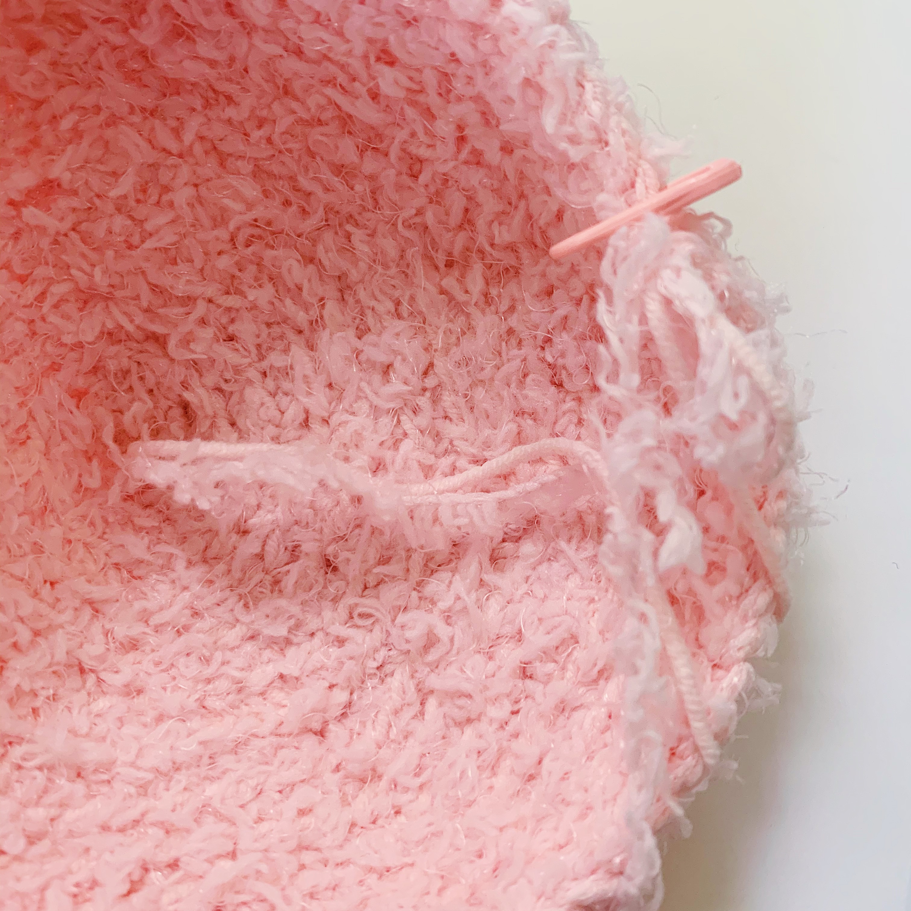 With 1 pink fuzzy yarn + 1 pink normal yarn: