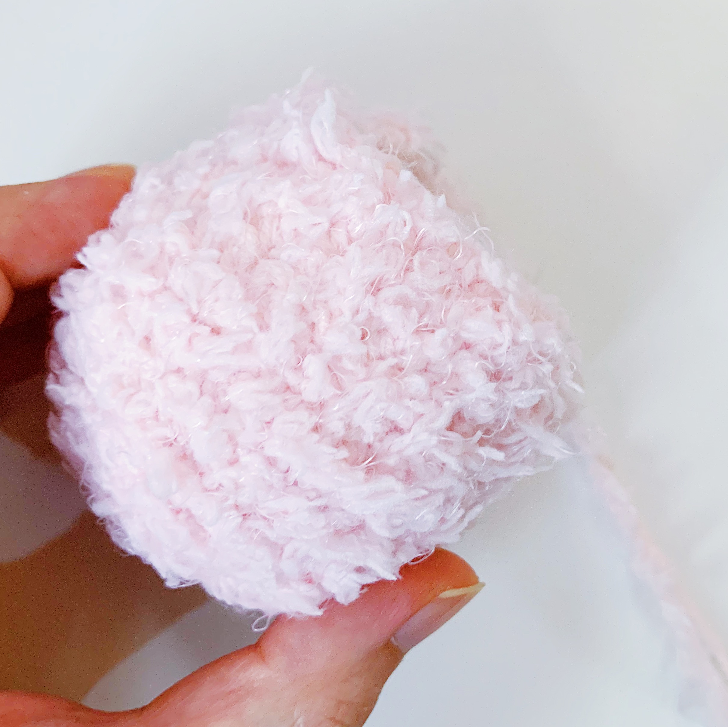 **To crochet with fuzzy yarn, it is easier to pair 1 fuzzy yarn with 1 normal yarn of the same colour so that you can see where the stitches are. The wrong side is usually fuzzier, so we use this as the outer side of the doll (the part that is visible).