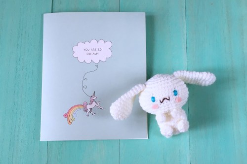 Cinnamoroll was originally cast as one of the many stars of the book, but was later left out so that we could make space for his other friends. Poor pup! But everything is better now as you can finally make your own crochet Cinnamoroll!