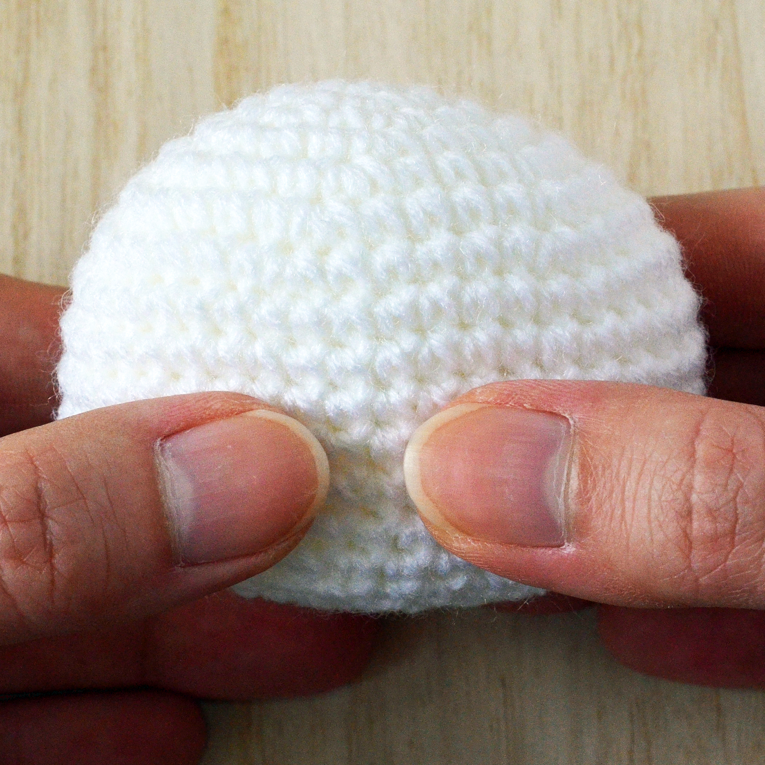 Make one stitch and go back down to the bottom of the head. Gently tug on the yarn to create a slight indentation.