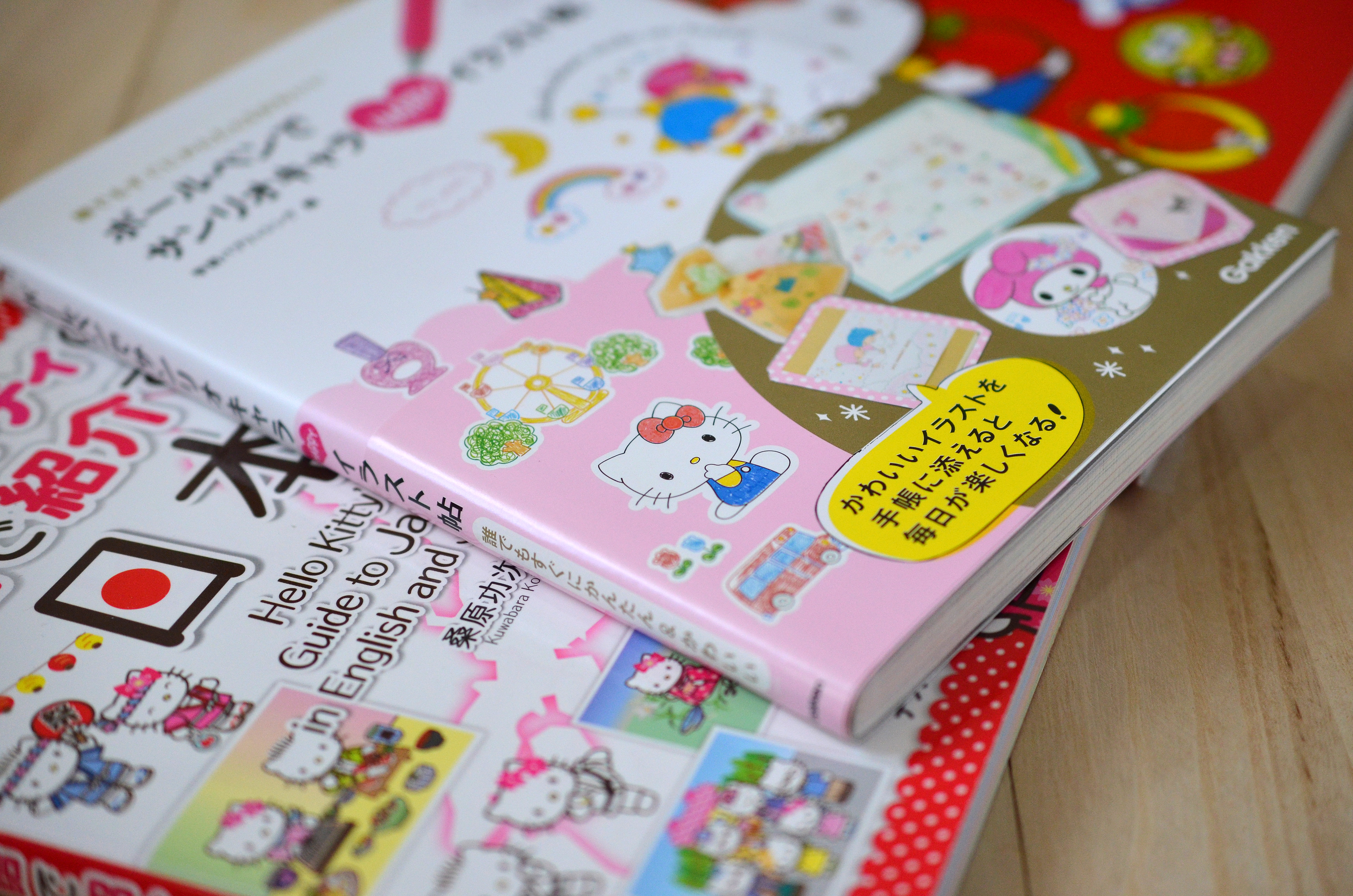Here’s a sneak peek at what we did while working on the book. We bought a couple of Japanese Hello Kitty reads to help with the designing of the Sanrio bunch.